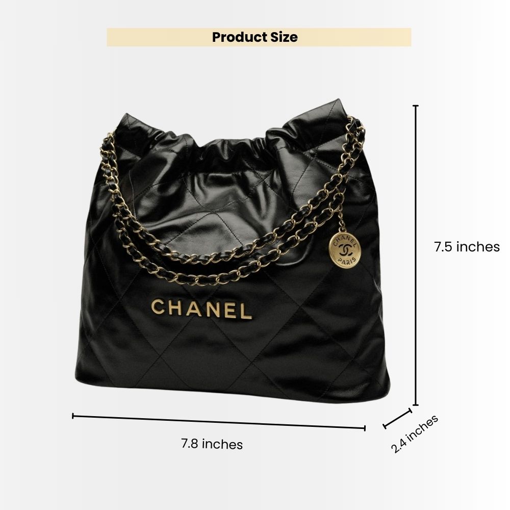 - The Chanel 22 Mini Bag in Shiny leather Black, 22cm, exudes modern sophistication with a luxurious touch. Its sleek, glossy leather offers a timeless and elegant look, perfect for both day and night. Compact yet spacious, this mini bag is designed to hold essentials while adding a refined edge to any outfit. An effortlessly chic piece for the modern fashionista.