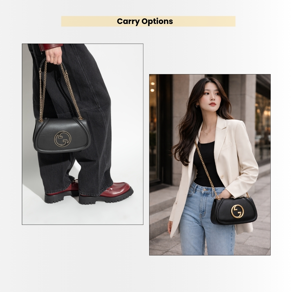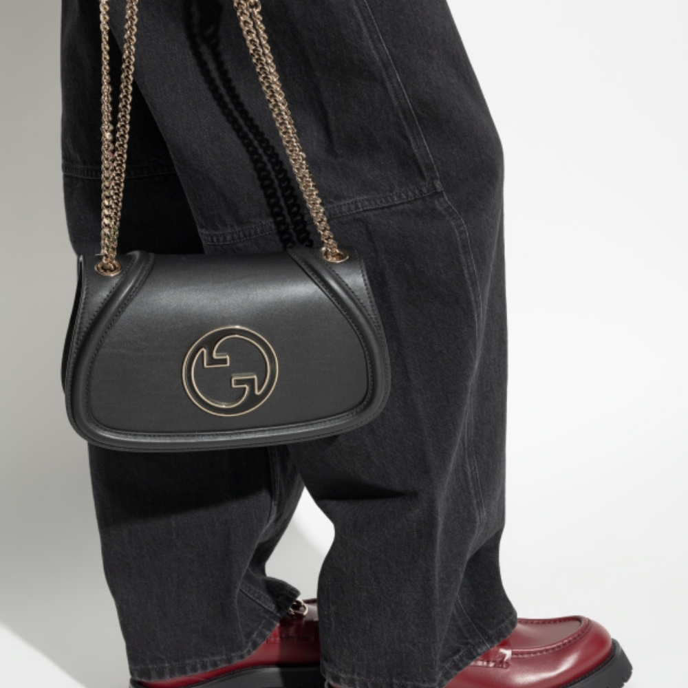 Gucci Blondie Small Shoulder Bag Black Leather 26Cm 815715 AAEEX 1000