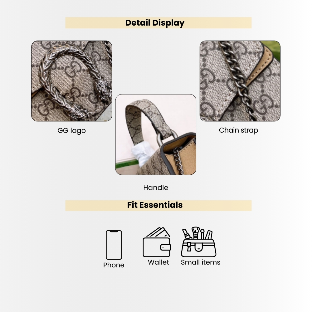 Gucci Dionysus Mini Top Handle Bag Beige Ebony 18Cm 752029 KHNRN 8642