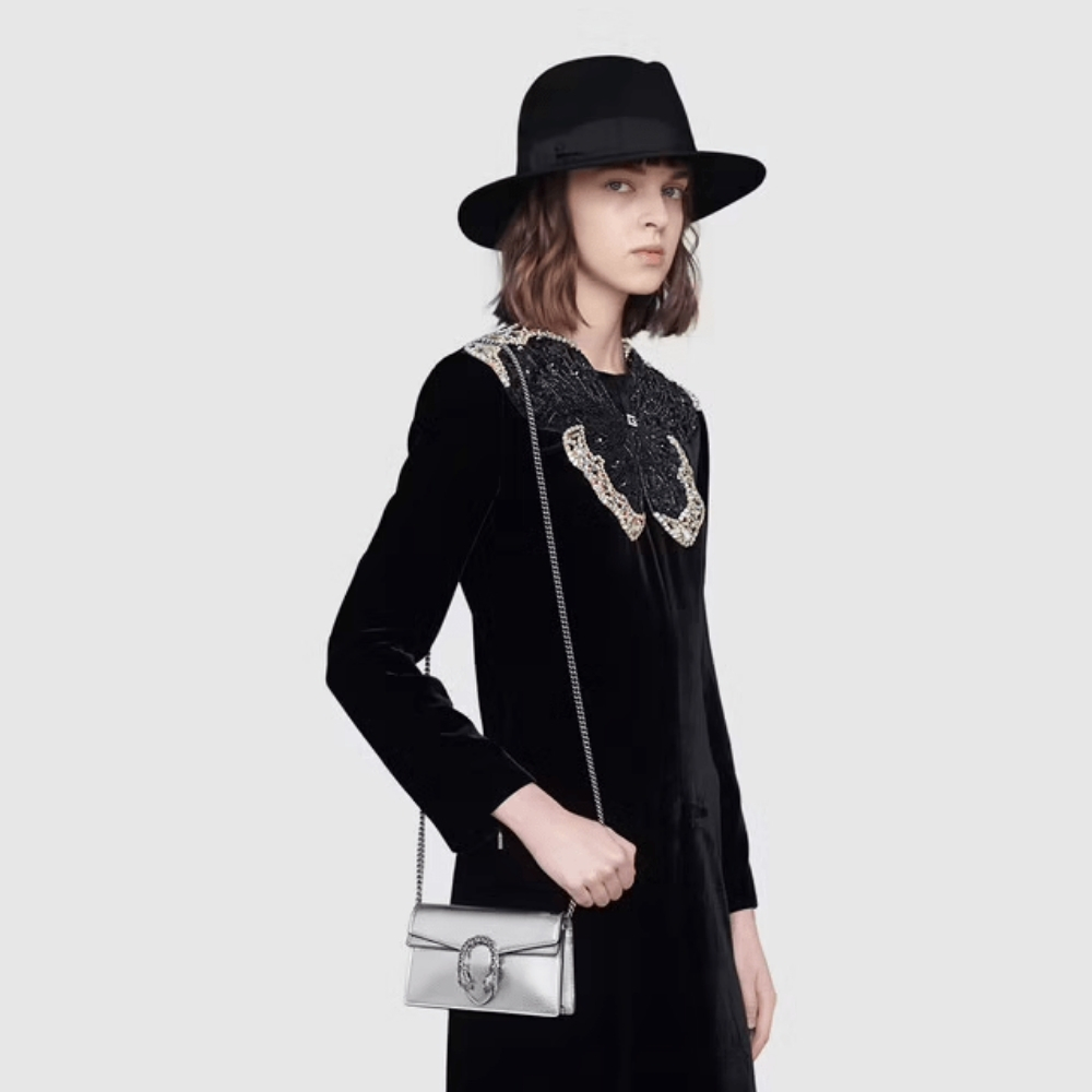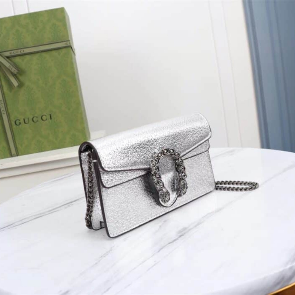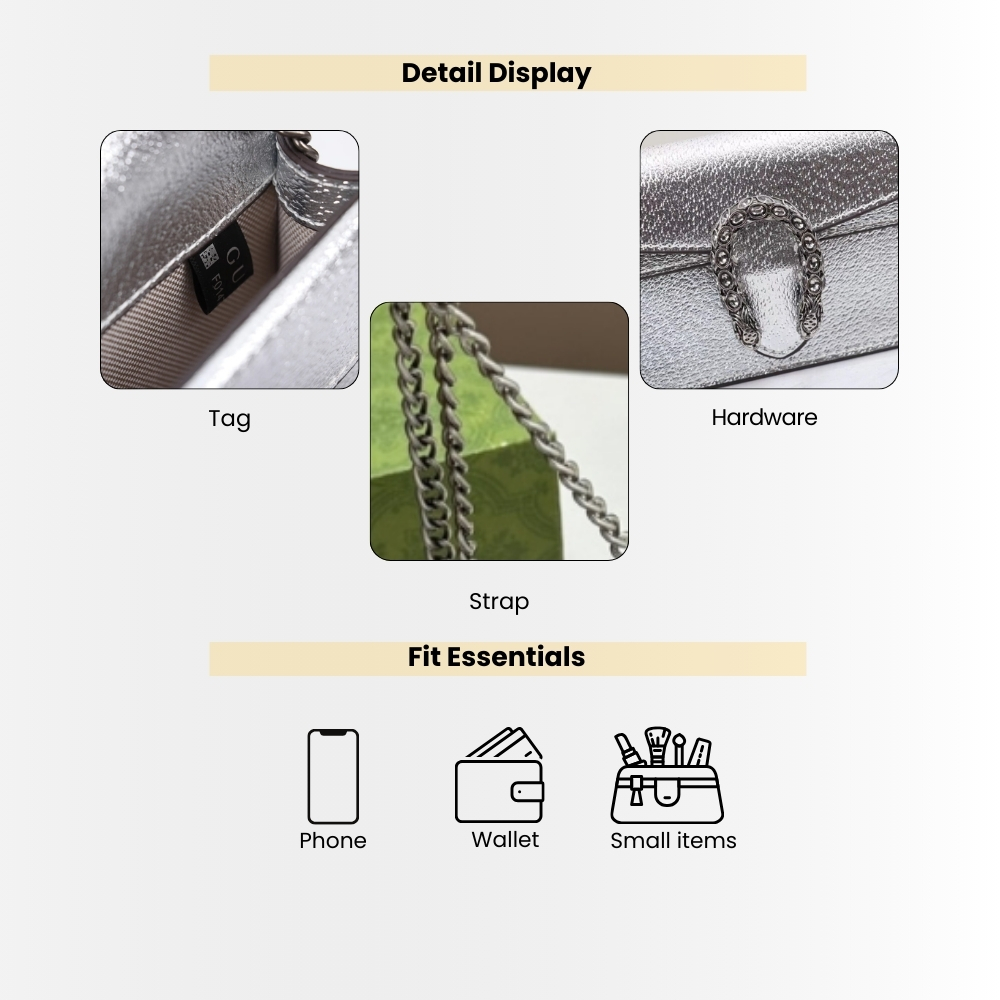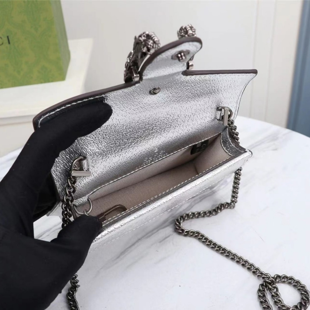 Gucci Dionysus Super Mini Crossbody Bag Silver 16Cm 476432 1TRBN 8173