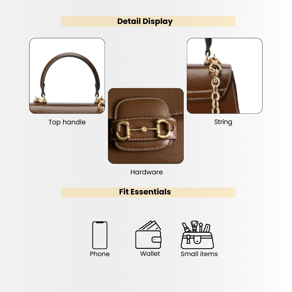 - Handle: Top handle with detachable chain strap