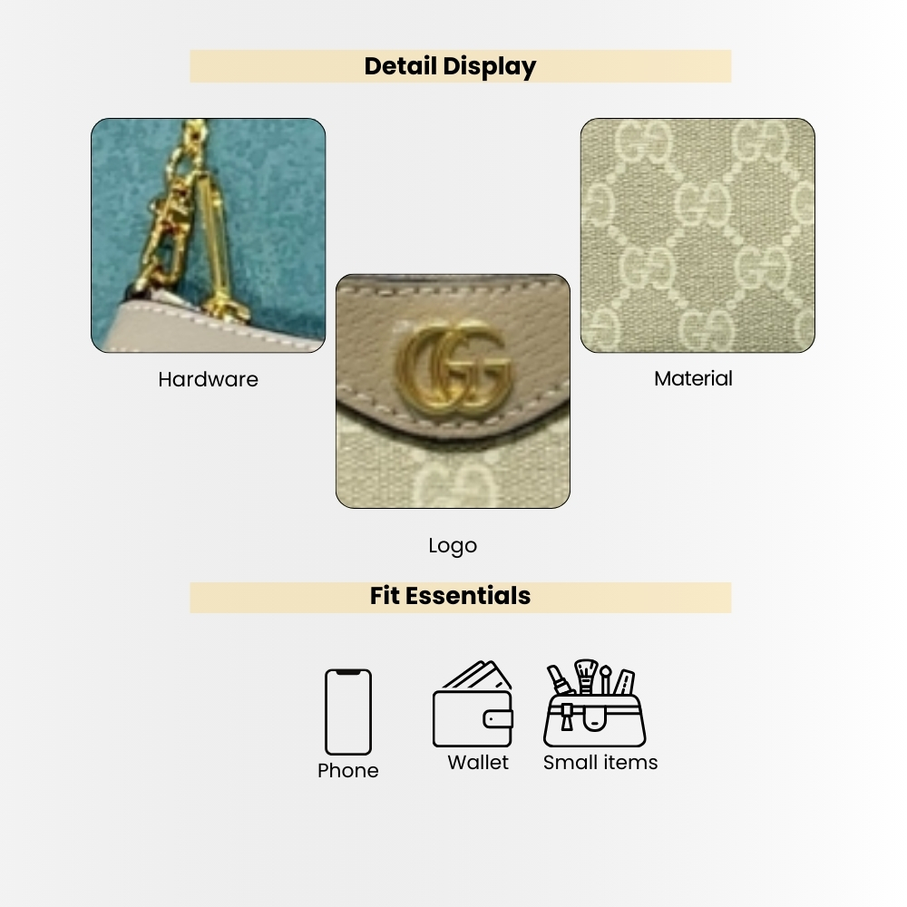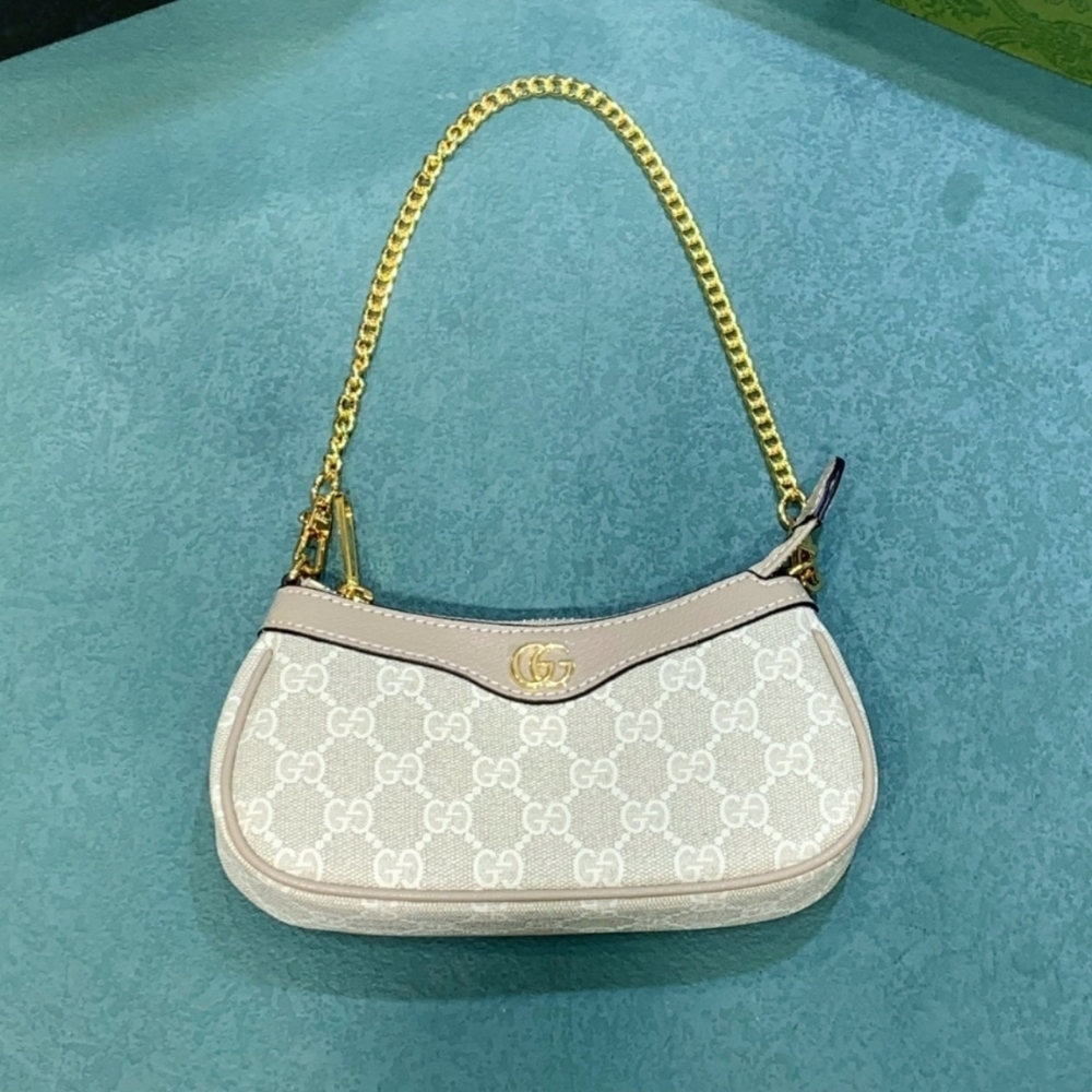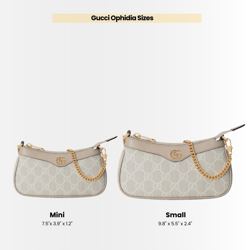- The world of Ophidia continues to evolve, incorporating new shapes and materials each season. Presented in beige and white GG Supreme canvas, the mini bag is completed by a Double G hardware. The sleek yet practical size effortlessly fits an iPhone, making this style an indispensable essential.