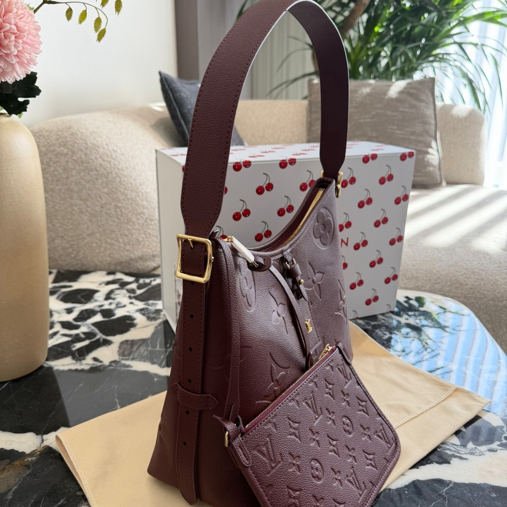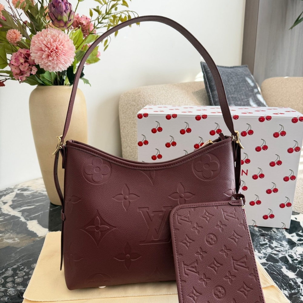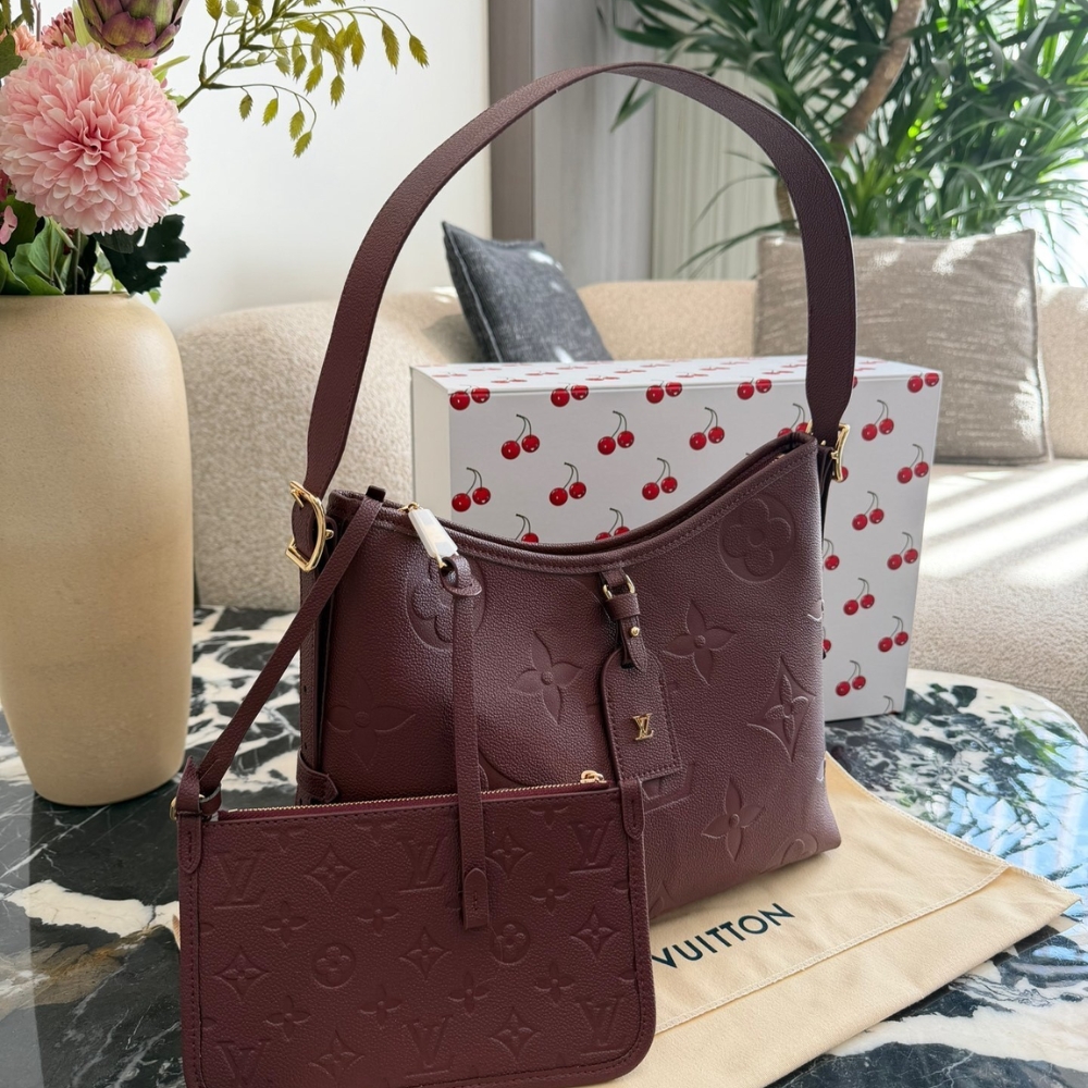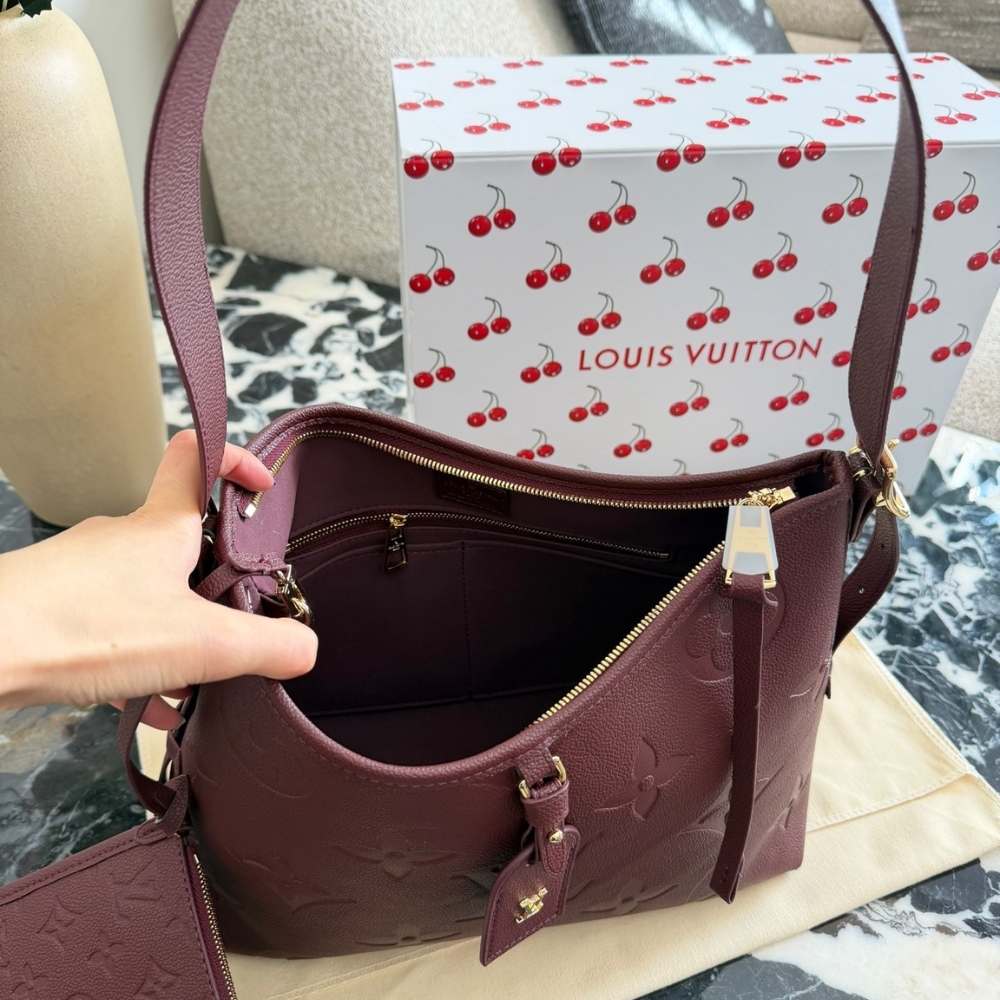 - Living up to its name, the CarryAll PM is the perfect city bag. Crafted from signature Monogram Empreinte leather, this sleek design is elevated with gold-toned hardware and sized to fit daily essentials. Inside, it is fitted with multiple pockets and also comes with a detachable name tag.