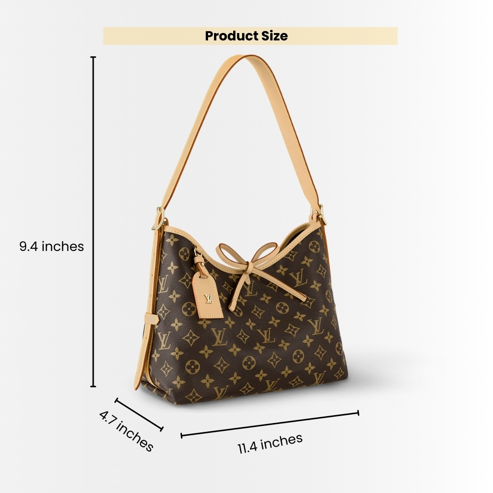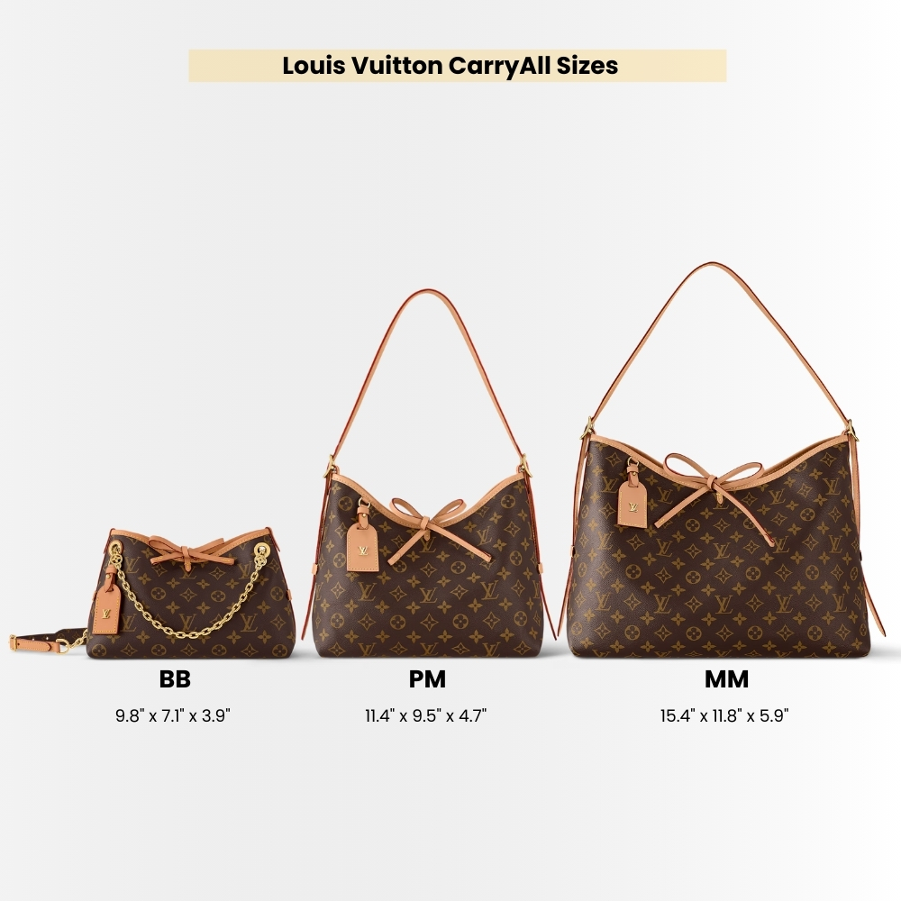 - The stylish CarryAll PM bag is crafted from Monogram Canvas with leather trim. Inside, there’s ample space and two convenient side pockets, along with a smaller Monogram Canvas pouch that’s zippered and easily detachable or attached to the larger bag via a leather strap.